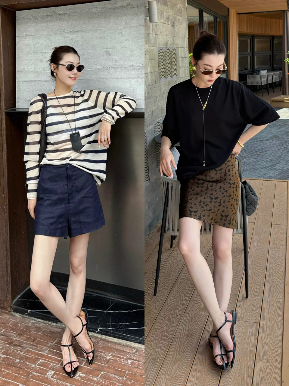 咱们拥有高挑纤瘦身材比例和大长腿。这时候确实很适合穿上一双黑色的平底凉鞋 配上百慕大短裤或者是直筒短裙,这样的穿搭更适合现在的春日季节,清爽又个性。
