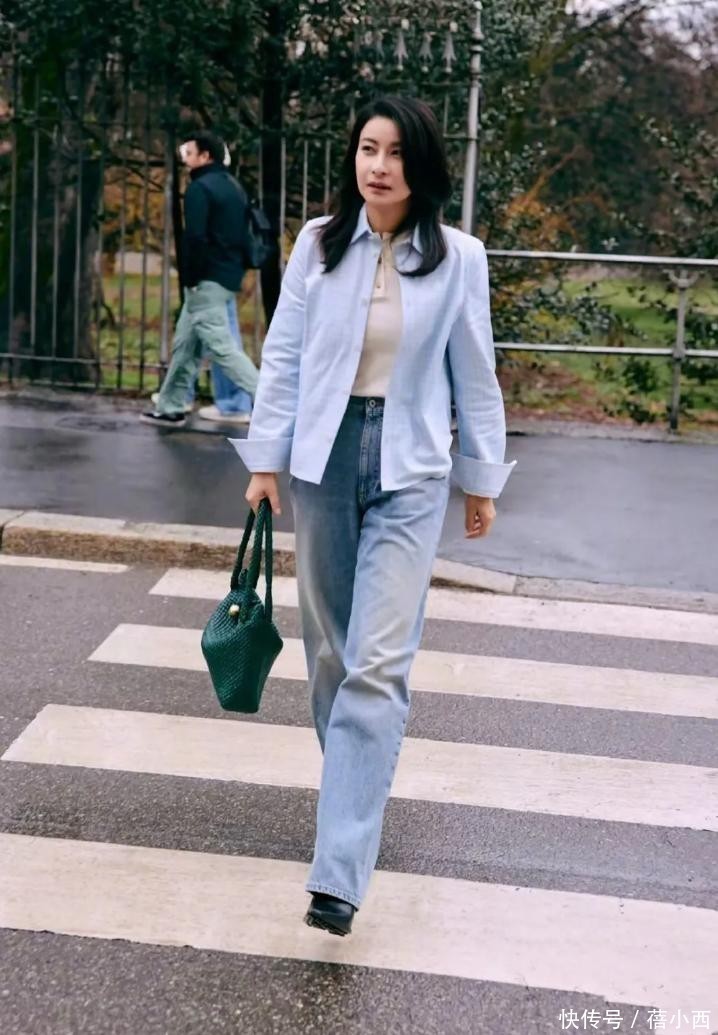 郭晶晶不愧是气质女神,这两组衬衫穿搭春天完全可以试试,毕竟现在温度基本在二十度以上,不怕冷。