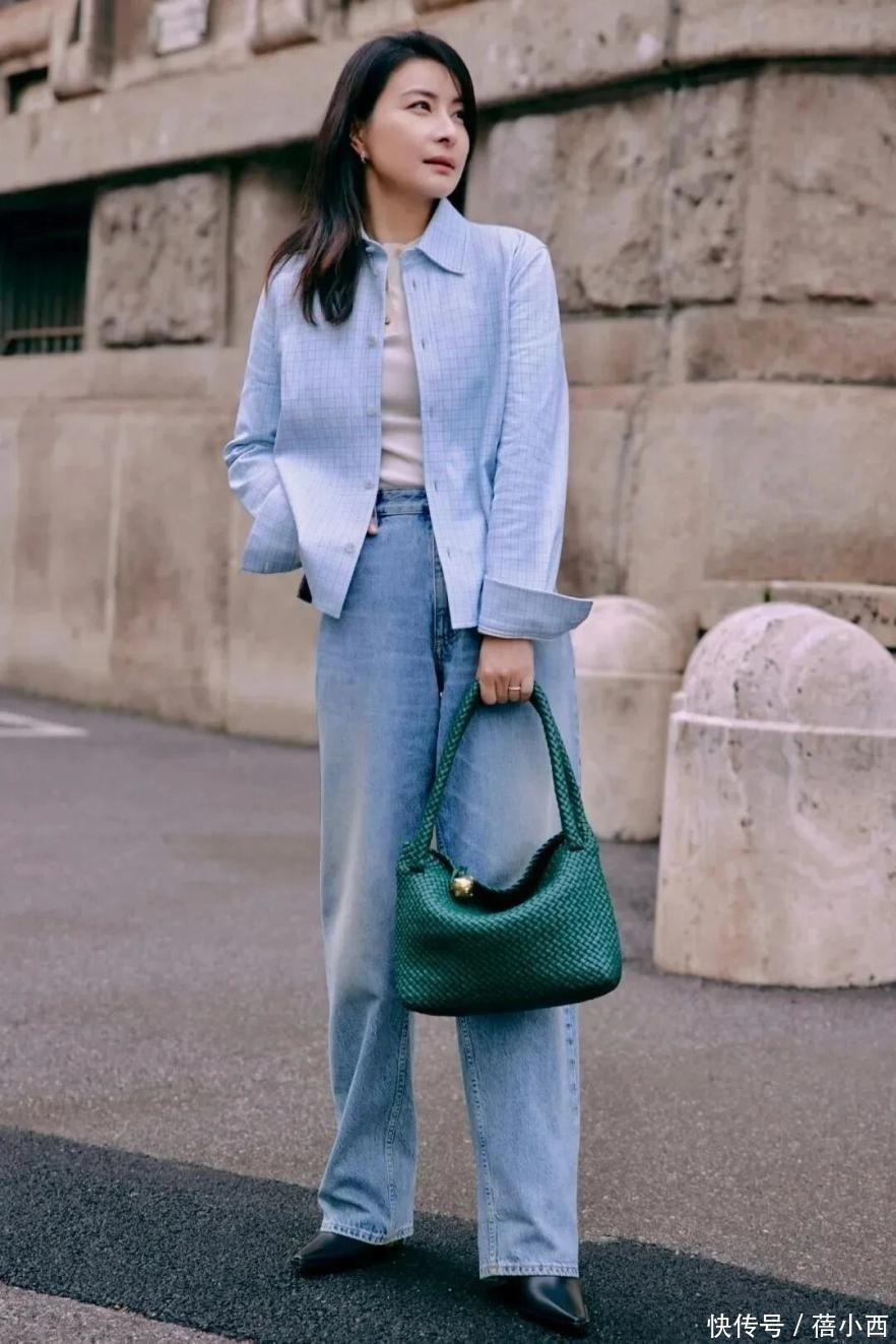 斜挎的小方包可以说是点睛之笔,包身挺括有型。20多岁的年轻女生穿这套,会穿出一种“轻熟知识分子”的感觉,把校园感和初入职场的干练感平衡得刚刚好,不会显老,反而自带一种超越年龄的沉稳气质,日常上学、通勤都能穿,清爽又显品味,还能穿出独属于年轻女孩的朝气。30+的女性穿,则把成熟女性的优雅和松弛感拉满。