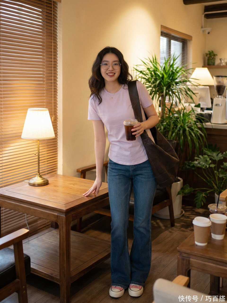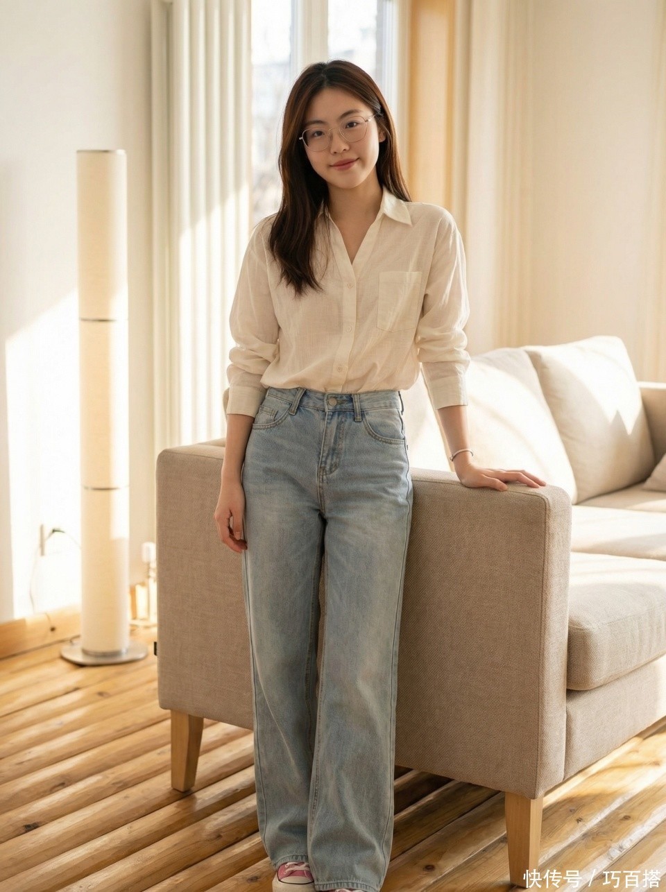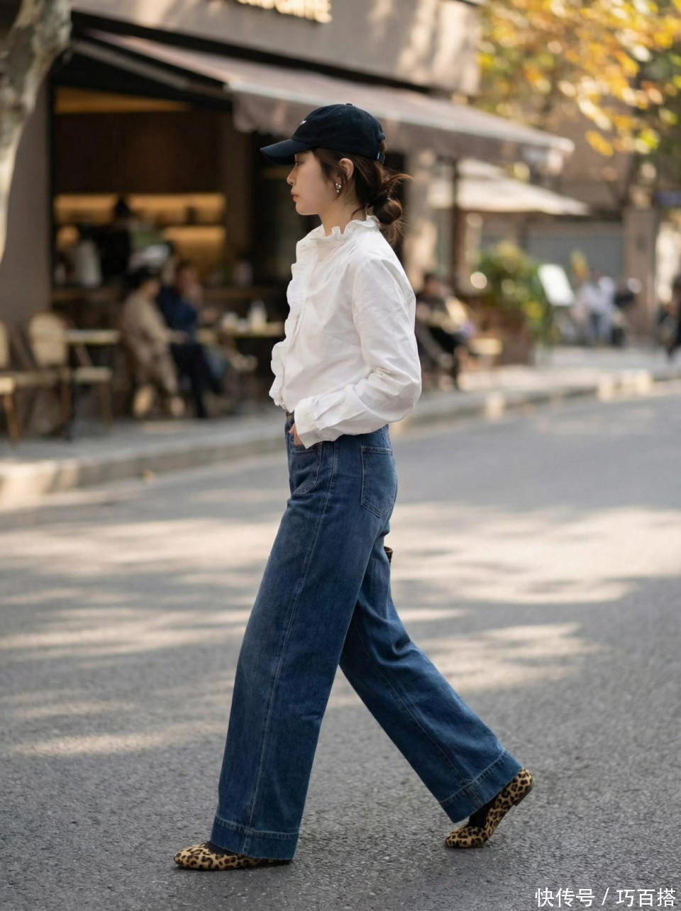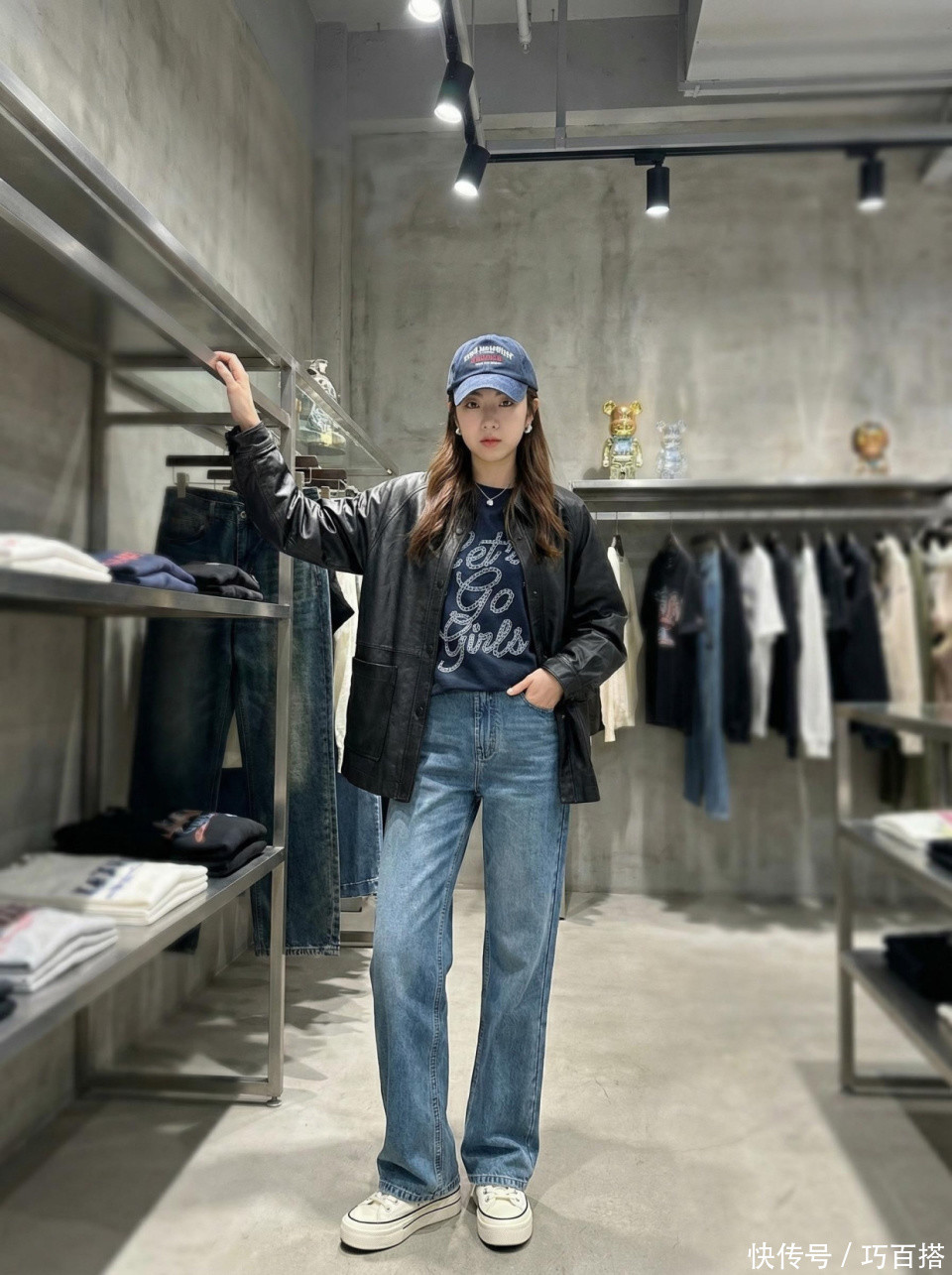 一,市面上常见的窄版牛仔裤的宽松度把握得非常到位,牛仔裤上身既有松弛氛围又不会过于懒散,精气神十足、青春有活力。